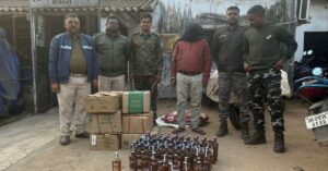 #Bokaro: सहायक आयुक्त उत्पाद, बोकारो के निर्देश पर उत्पाद विभाग की टीम ने गुप्त सूचना के आधार पर कसमार थाना क्षेत्र में बड़ी कार्रवाई की। खैराछातर स्थित महाबीर चौक के पास चिंटू शू सेंटर में छापेमारी कर विभिन्न ब्रांड की अवैध विदेशी शराब बरामद की गई। मौके से दुकान संचालक अनीश कुमार जायसवाल को गिरफ्तार कर लिया गया।